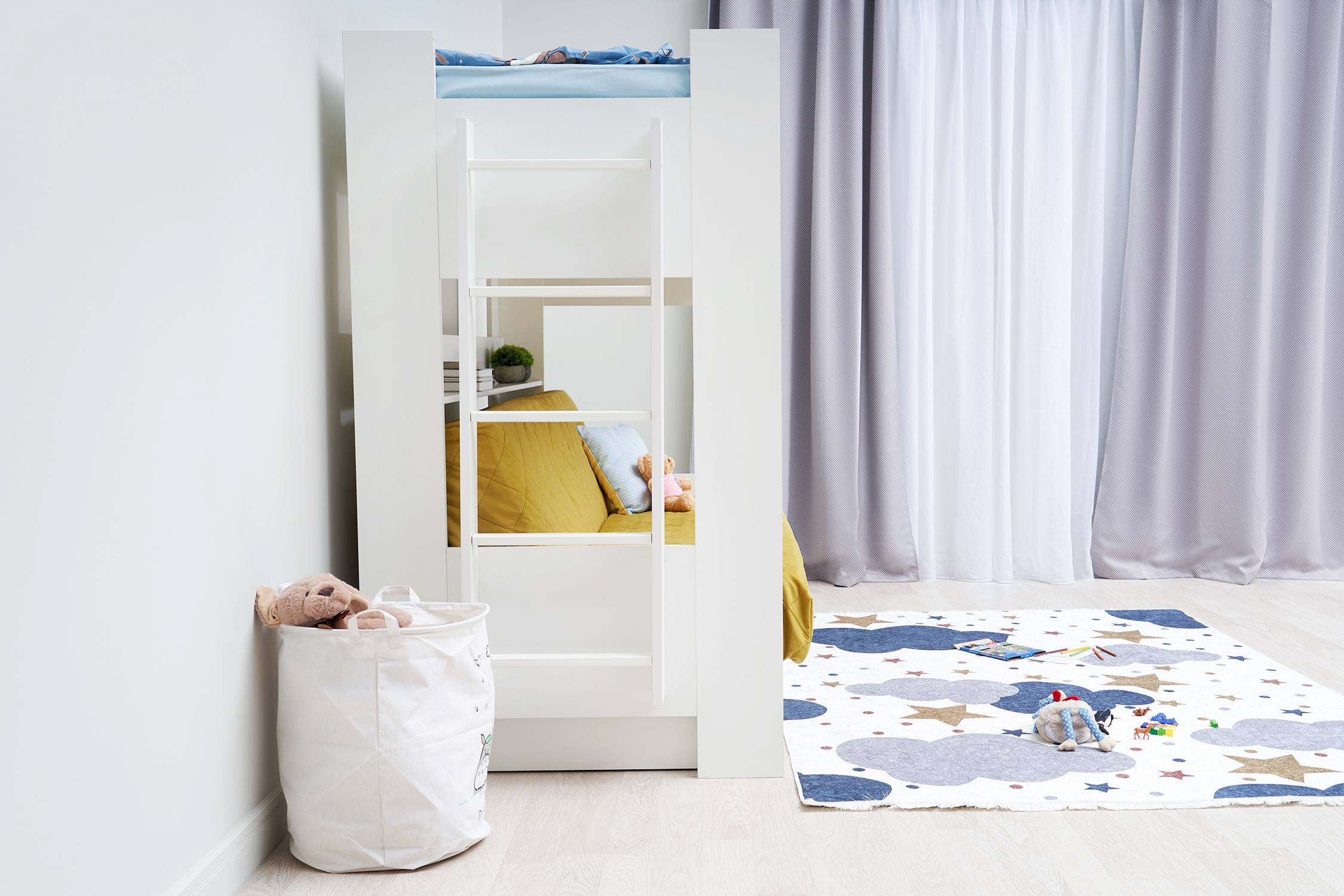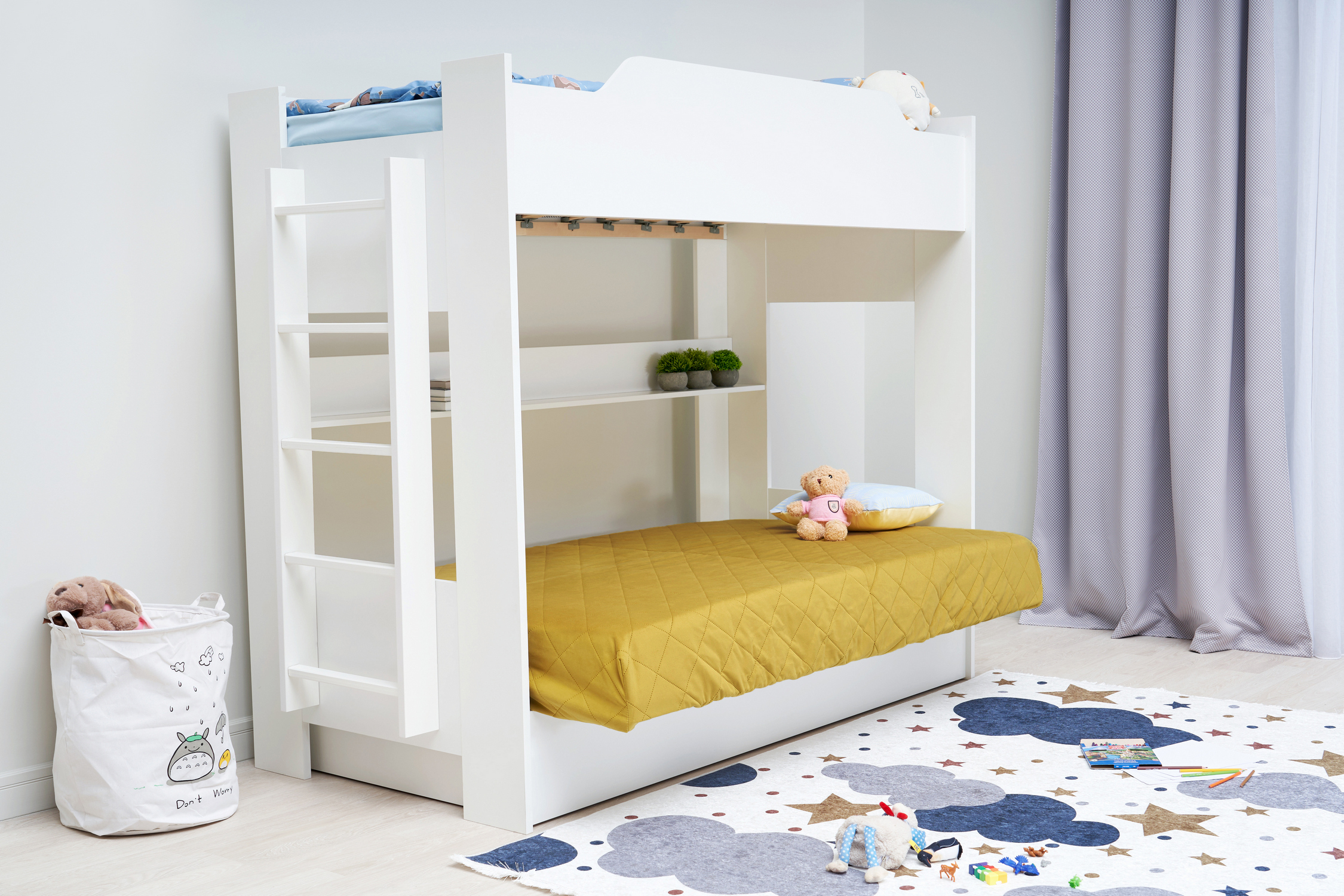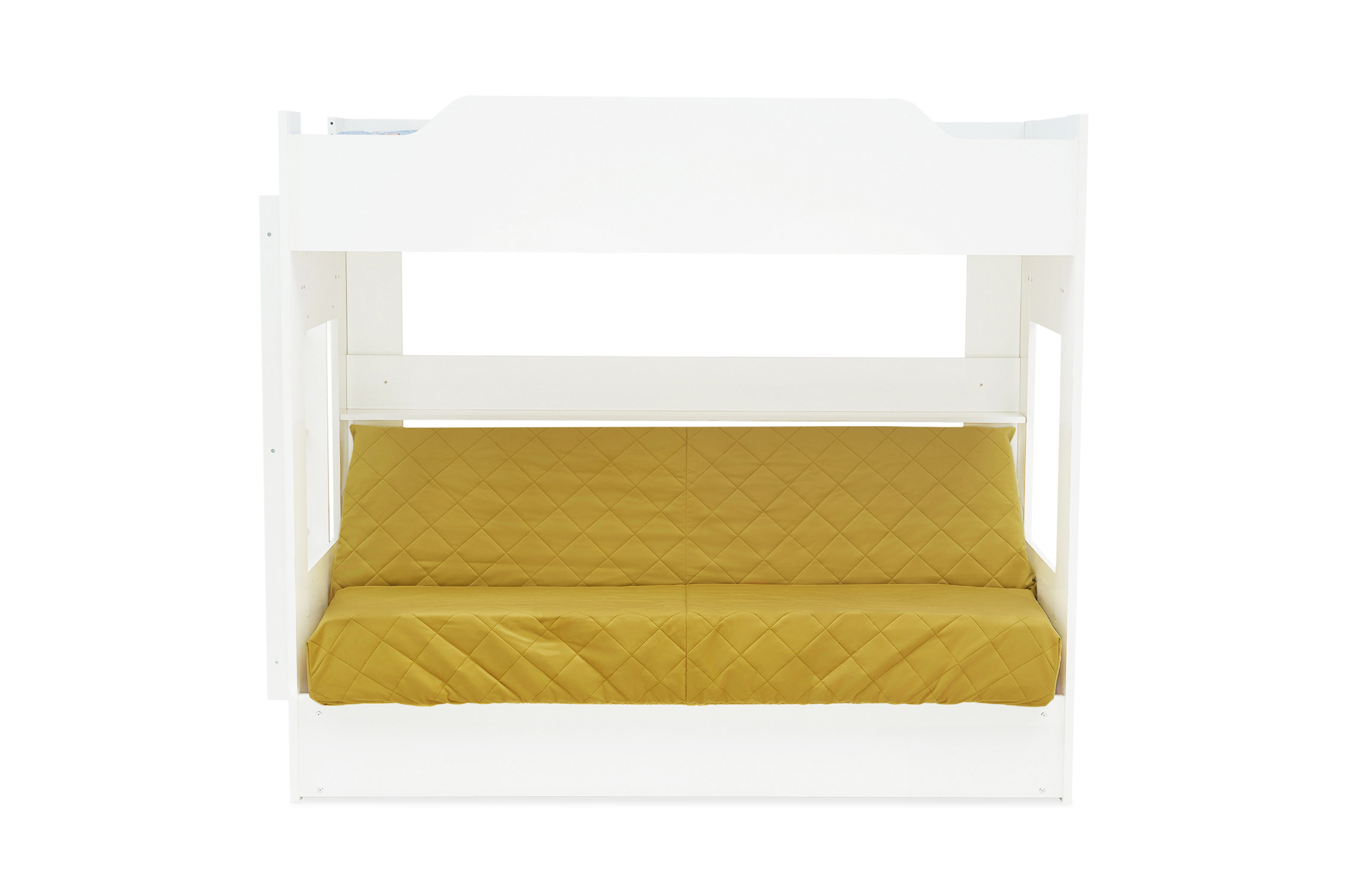 Механизм трансформации дивана: «Книжка». Рекомендуемая высота матраса на верхний ярус 17 см. Максимальная нагрузка на верхний ярус 50 кг. Лестница может быть установлена с обеих сторон кровати. Высота бортика 30 см. Максимальная нагрузка на нижний ярус 90 кг. Чехол съемный.